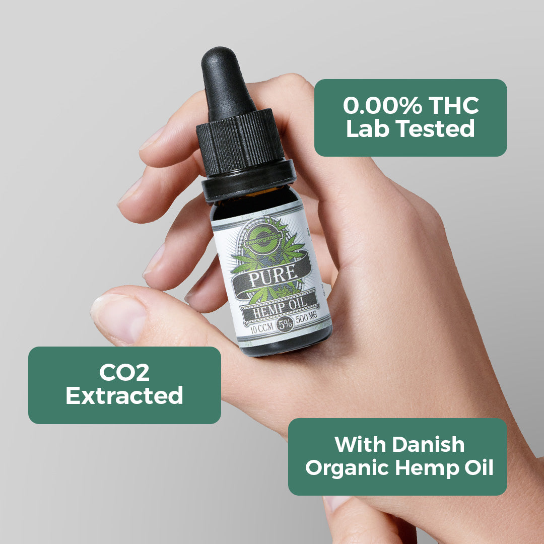 The PURE series without THC. The series comes in concentrations from 5 to 35% and is extracted from organic hemp. The oil has a delicious mild taste. We work with different farmers around Europe to ensure we always get high quality biomass. Our PURE series contains a wide range of cannabinoids and terpenes like the fresh product.